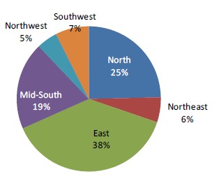 本报告对23个省市的调查结果进行了分析总结。257个酒店受访者中,有38%的受访者来自华东地区(上海、浙江、江苏、安徽、福建和山东),25%的受访者来自华北(北京、天津、河北、山西和内蒙古),19%的受访者来自中部和华南(河南、湖北、江西、广东、广西、海南),7%的受访者来自西南地区(重庆、四川、云南),6%的受访者来自东北(辽宁、吉林),还有5%的受访者来自西北(陕西)。