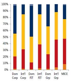 就区域来说,西北62%的酒店经营者认为与2012年相比,国内公司客户需求将对酒店经营业绩有比较积极或非常积极的影响;国内公司客户得分最高,得分35分。同样地,华东超过50%的酒店经营者对与国内休闲散客前景持积极态度,国内休闲散客得分34.