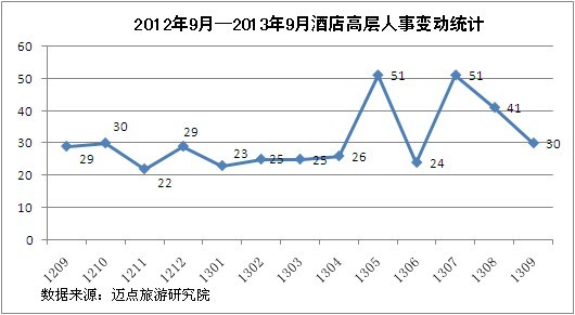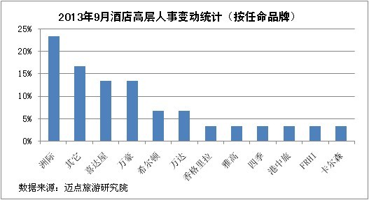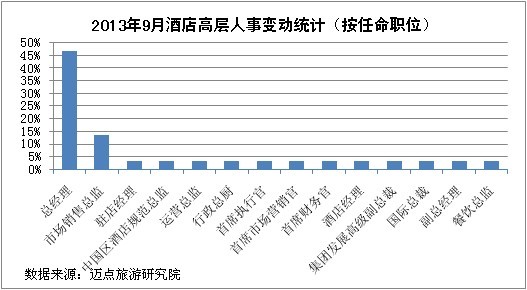 2013年9月,据不完全统计显示,总共有30位高管被任命,其中总经理职位任命共任命了14位,占全部星级酒店人事任命的47%。