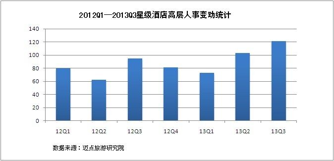 (迈点网 周凤)2013年3季度,进入迈点网“中国酒店业行业监测系统平台”的5982家星级酒店企业中,共有121位酒店高管任命,与上季度相比,任命人数增加了18位,增幅17%,与去年3季度相比,任命人数增26加了位,增幅27%。
