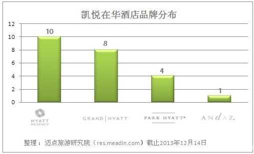 截止2013年12月14日,凯悦在华已开业酒店共23家。在区域分布上,开业数量最多的是上海。