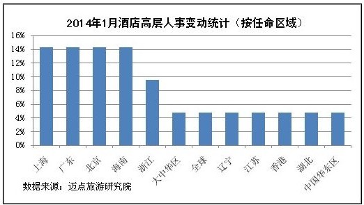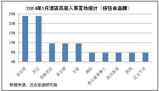 迈点旅游研究院统计数据显示,本月喜达屋共任命了5位高管,占全部星级酒店人事任命的24%,是任命最活跃的品牌;1月香格里拉、希尔顿和万豪也各任命了2位高管,占比10%;本月还有一些其他品牌有高管任命,例如洲际、凯宾斯基、凯悦、费尔蒙莱佛士、泛太平洋等。