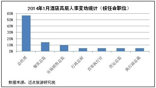 1月,总共有21位高管被任命,任命人数与去年同期相比,减少了2位,其中总经理职位共任命了12位,任命品牌上,喜达屋最活跃,共任命了5位高管。