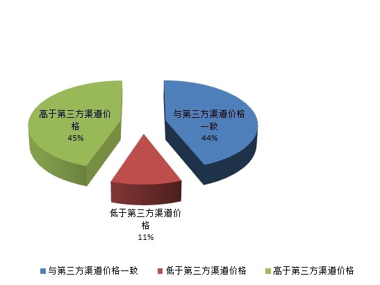 根据对全国358家酒店调查的结果来看,仍有33%的酒店在各个预定渠道的价格不一致,分销渠道价格一致的占67%,根据此数据我们可大胆猜想,33%的酒店管理者把更多的希望和订单来源锁定在分销渠道,这是非常危险和可怕的做法。