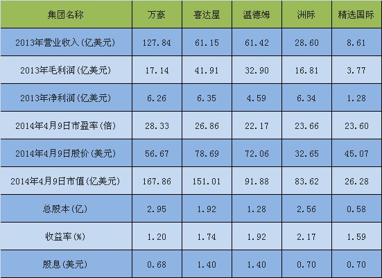 国际酒店集团九大数据一览表 迈点网 · 赵焕焱 · 2014-04-11 09:50:47 分享到 打开微信“扫一扫”,打开网页后点击屏幕右上角分享按钮。 2013年国际酒店集团净利润:万豪为6.26亿美元;喜达屋为6.35亿美元;温德姆为4.59亿美元;洲际为6.34亿美元;精选国际为1.28亿美元。 国际酒店 0