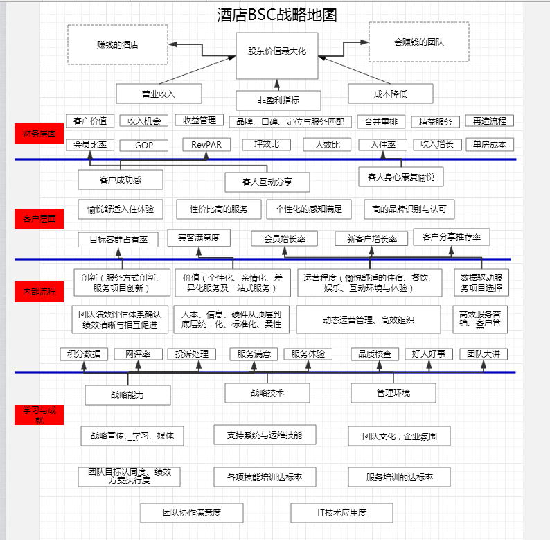 从这个分析,我们可以看到酒店实现成功的路径地图: