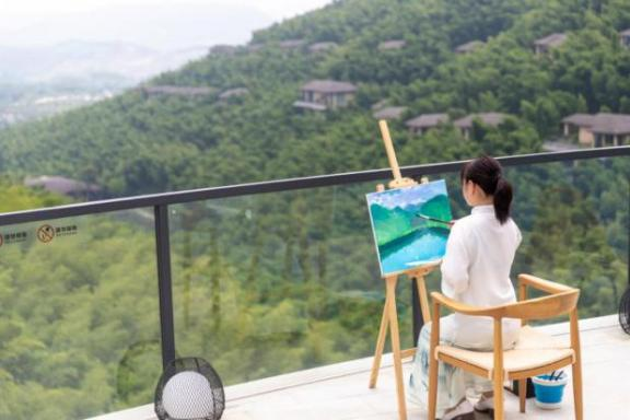 一是设计了五大文化主题客房。“花”主题:怡然自得赏芳华,“花”房一室一厅,房内空间明亮,露台院落式风格,伴以花草,古韵而雅致;“文”主题:宁静致远、修性怡神,二室二厅内,几案上有文房四宝,可伏案而作,此处可以文会友、赋诗泼墨、意境高远;“茶”主题:点茶问道、花朝月夕,三室二厅内布局茶具陈设,约上三五好友或家庭亲子,共品茗、赏竹海;“棋”主题:逍遥得极、高道自乐,三室三厅内布局传统棋文化与对弈角,将现代气息与儒雅国风巧妙融合;“艺”主题:灵心胜造物、妙手夺天工,房内的礼、乐、射、御、书、数等六大术艺相衬,四室两厅的设计,时刻演绎着原生态的生活艺术。