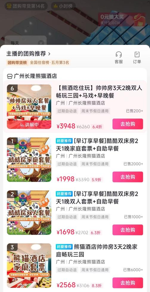 酒店类:“广州长隆熊猫酒店”月销2000万荣登酒店类榜首