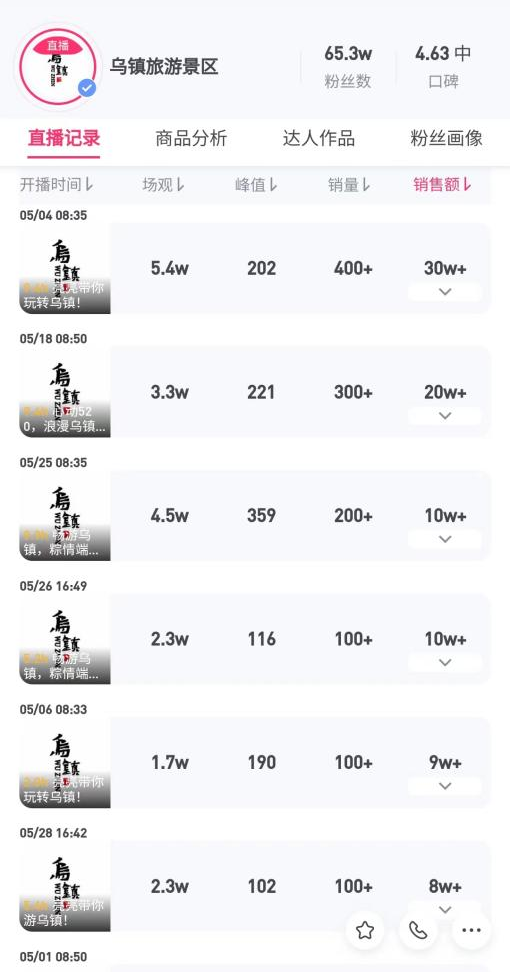 景区类:“乌镇旅游景区”抖音直播月销400万