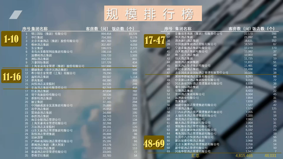 这张图中可以看到完整的饭店集团规模排名情况。