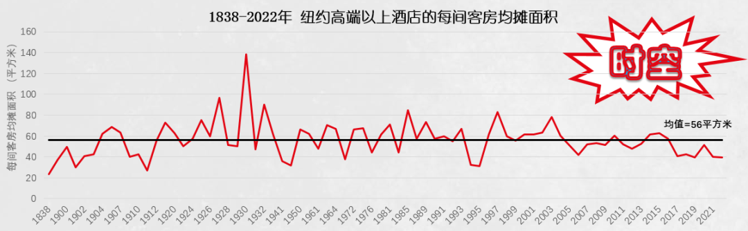 如今,纽约高端饭店的客房均摊面积只有56平方米,而在1930年时则是140平方米。中国的星级饭店是不是在重复着美国人一百年前的故事?饭店客房宽敞的面积,看着是很好,住着也不错,但收益呢?人家用50平方米的客房卖500美金,而我们用100多平方米的客房也只能卖500人民币。