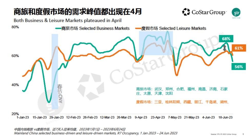 上面是STR发布的一个商务市场和度假市场恢复情况的数据,从五月份就开始掉头向下,商务需求掉的更加突出,与我们靠经验判断的结果高度一致。