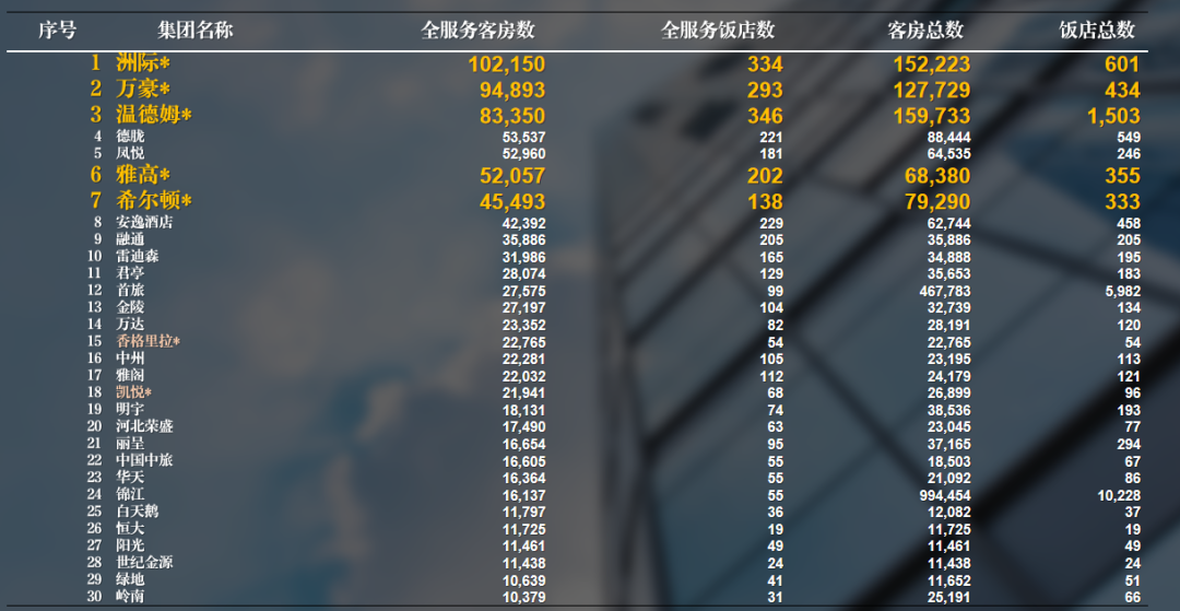 按照所持有全服务型饭店房间数量的饭店集团排名