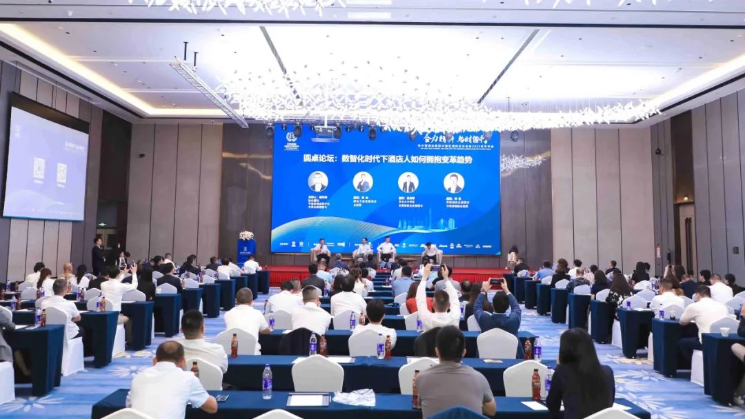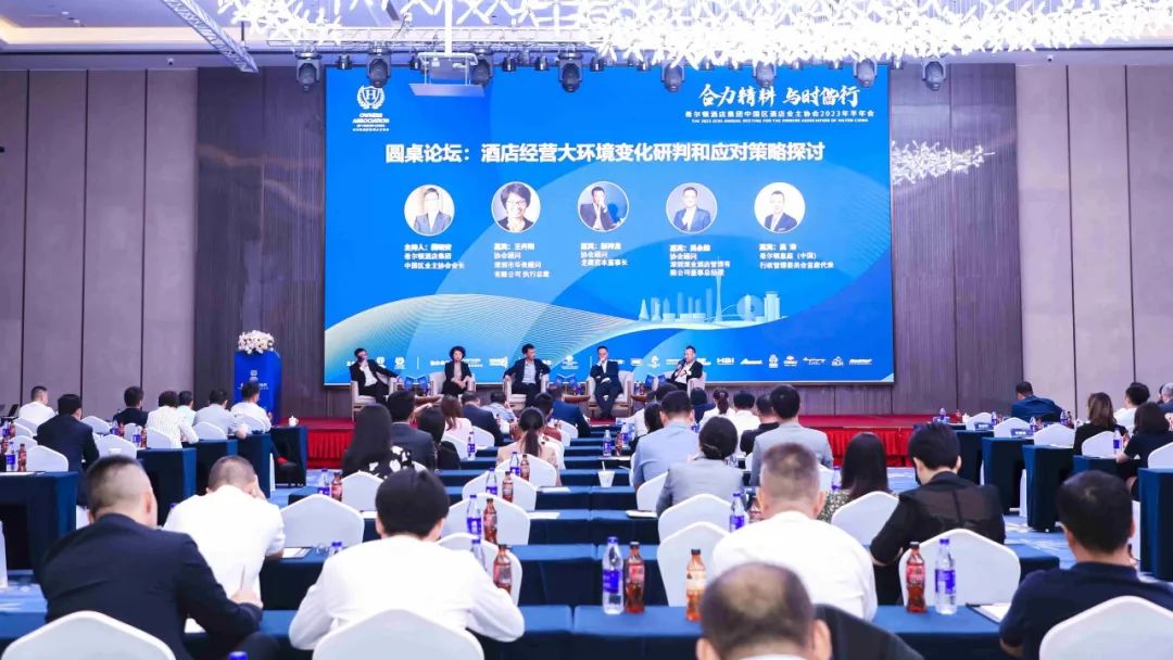 大会议程中十分吸睛的还有两场精彩纷呈的圆桌论坛,第一场针对数智化时代下酒店人如何拥抱变革趋势的热门话题,特别请中饭协酒店数字化专委会副理事长胡升阳先生担任主持,腾讯文旅、华为两个头部企业文旅板块负责人和凤悦酒店及度假村市场营销部总经理作为嘉宾,腾讯文旅智慧酒店总经理黄杰先生,和华为大中华区全屋智能业务部部长吴海军为现场参会人员精辟分析了酒店数智化的现状,强调可靠性、体验感,让会员单位判断在引入数智化合作伙伴时去伪存真,实用性超强。凤悦酒店及度假村市场营销部总经理刘勇先生也为大家分享了凤悦在数智化方面所采取的措施和成效,具有重要的借鉴作用。另外一场圆桌论坛由协会会长藏晓安先生主持,讨论嘉宾特别设置包括学术领域专家知名的咨询顾问公司华美的执行总裁王卉阳女士和龙藏资本的董事长赵祥龙先生,也邀请行业实战专家,来自深业酒店管理有限公司的董事总经理吴永验先生和希尔顿惠庭中国行政委员会首席代表高涛先生。四位嘉宾的同场激情碰撞,深入浅出的对目前酒店行业的内外部形势做出了剖析和如何应对给出了非常具体的实战建议,最后四位嘉宾还用一句话对酒店同仁送出真诚寄语。