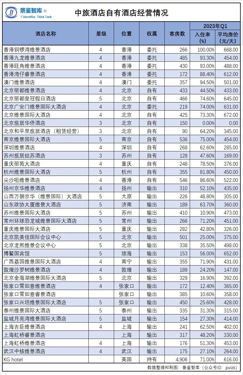 最近三年(2020-2022),中旅酒店业务产生的营业收入(含英国地区酒店)分别为11.57亿元、17.45亿元和19.04亿元,2023年Q1收入4.98亿元。从今年一季度业绩来看,自有酒店经营数据良好,而输出管理的酒店业绩差距明显。