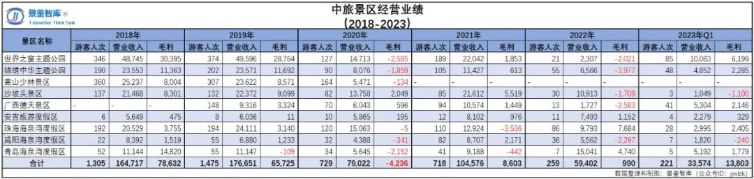 景区收入从疫情前2019年的17.67亿元,下跌至2022年仅有5.94亿元,2023年Q1恢复到3.36亿元。