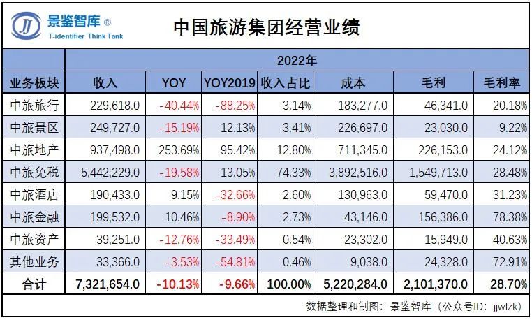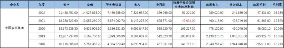 2022年中国旅游集团的纯旅游收入为28.90亿元,其中旅行社收入22.96亿元,景区经营收入5.94亿元,约占集团总收入的3.95%。