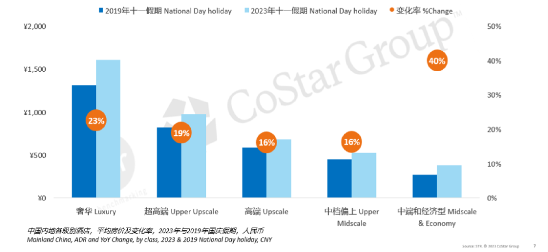 STR发布的2023年十一长假期间上海的相关数据显示,尽管上海的整体水平超过了2019年,但以浦江两岸为代表的城市核心商务区域,入住率仍未超过2019年同期水平。