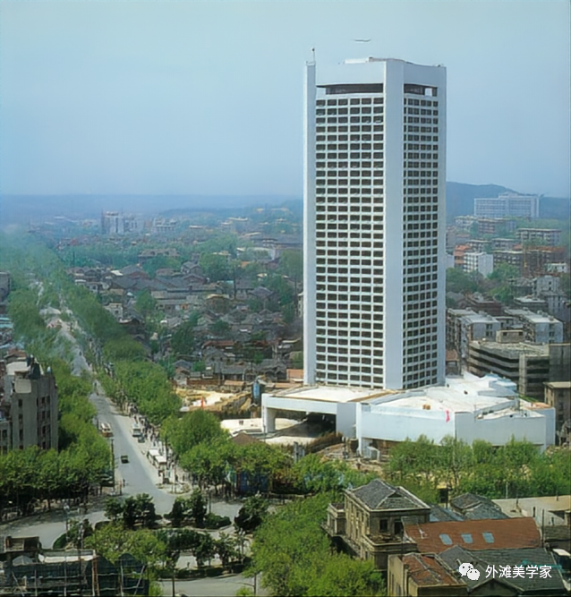 不得不说,金陵饭店1980年代的建筑设计,如今看来,依旧是外表时尚干净,在整个新街口地区,金陵饭店是鹤立鸡群般的存在。