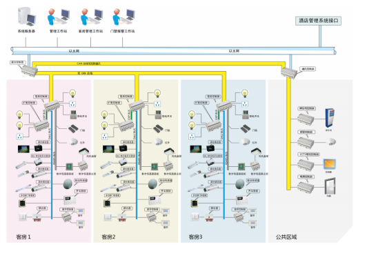 智慧酒店系统是一个采用了SAFTOP智慧建筑IOT-LINK物联网关键技术子集的酒店客房中央控制系统,是包括了身份安全识别、照明、空调、窗帘、报警等智能物联执行或传感终端等软、硬件产品的技术平台。