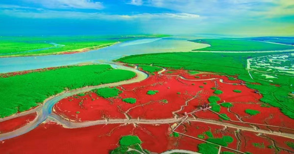 如今,昔日的“南大荒”,已成为闻名遐迩的“湿地之都”。“红海滩”已经成为城市的一张靓丽名片。“红海滩”已经让盘锦走向全国,走向世界;也让全国、让世界认识了盘锦。