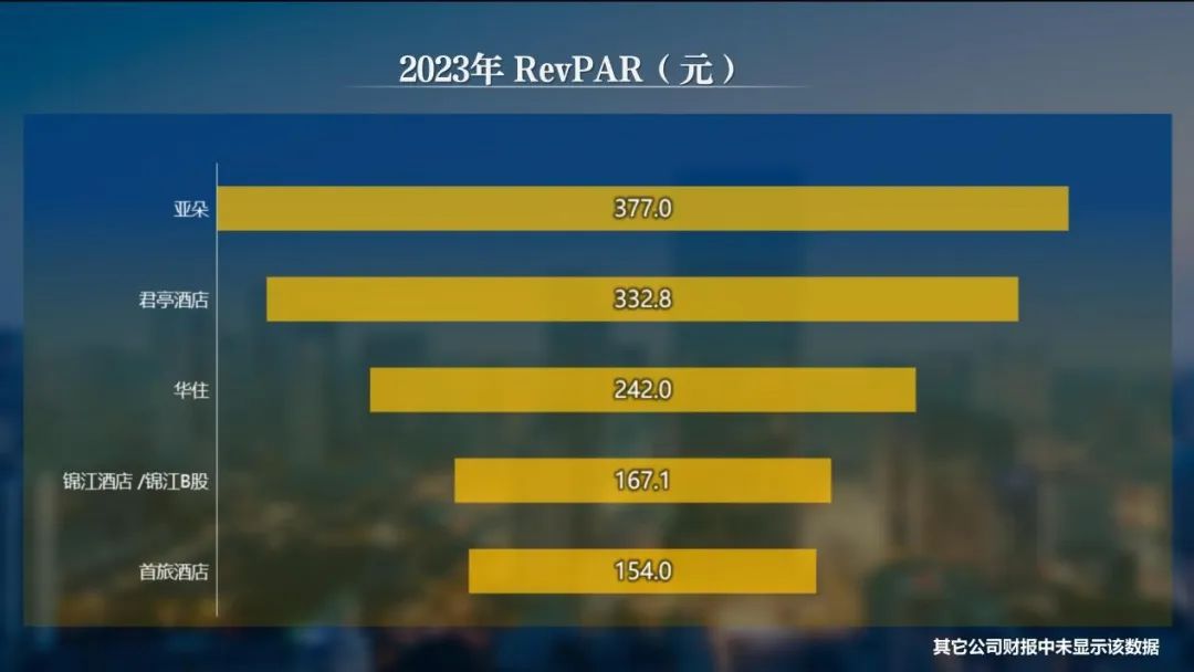第四个指标是RevPAR,提供此数据的上市公司排序是:亚朵、君亭、华住、锦江、首旅,其他公司没有提供。