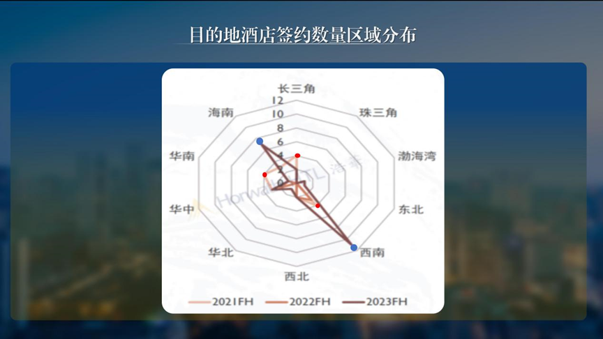 从浩华统计的饭店签约情况来看,2023年这条线变得非常夸张,西南成为最热门地区。至于西南地区饭店的客源结构,我想不用多做分析,大家都十分清楚。