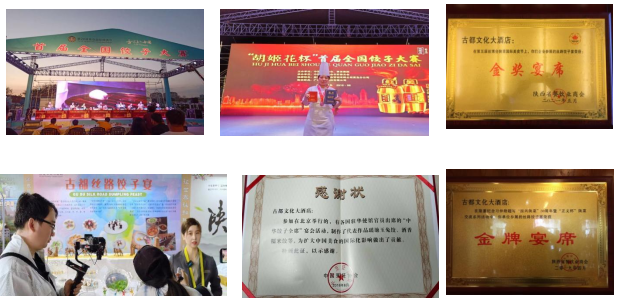 经过多年的策划设计、研发制作、创意打磨,“古都丝路饺子宴”逐渐完善成熟:2017年,“古都酒店”在“西安丝绸之路·国际美食节”上,“古都丝路饺子宴”获得了组委会颁发的“优秀奖”;2018年酒店参加在青岛举办的首届“全国饺子大赛”中,“古都丝路饺子宴”获得季军;2018年8月30日,酒店应邀前往北京饭店参加首届“中华饺子全席20国使节品鉴会”暨“中华饺子全席”的向联合国申遗活动,“古都丝路饺子宴”以其新颖的创意和独特的制作工艺得到了各国使节的高度认可和肯定。该宴席近几年多次被陕西省餐饮业商会授予“金牌宴席”和“金奖宴席”。