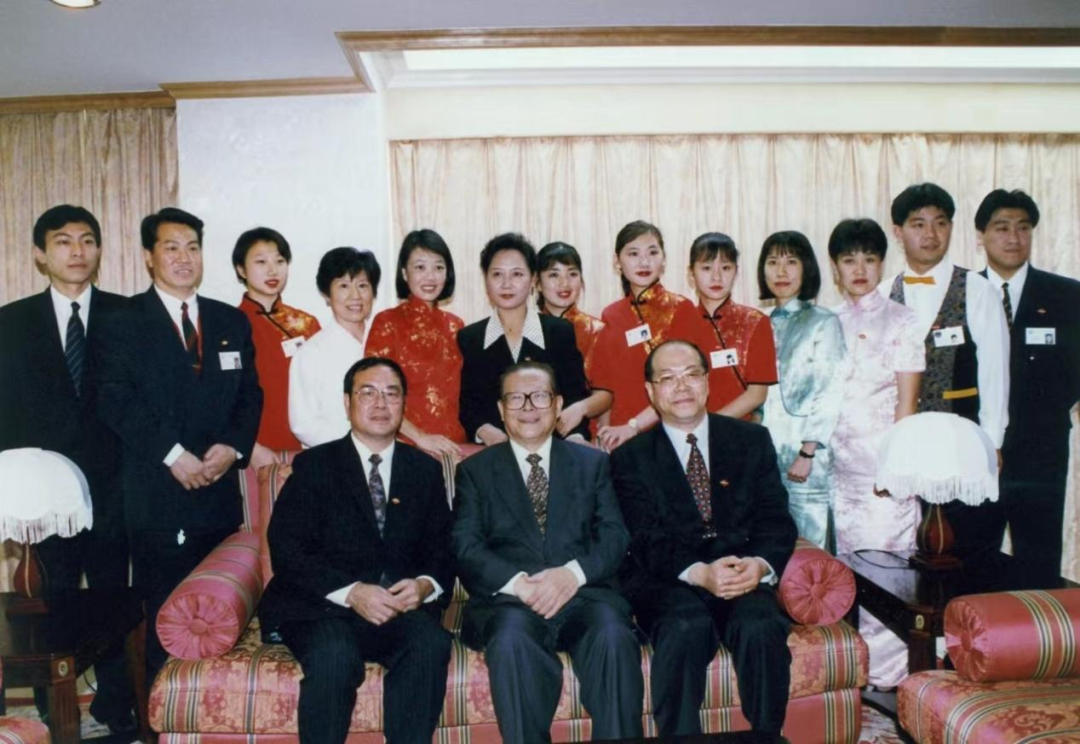 江泽民同志在湖北宜昌与“建国国际”派出管理团队合影
