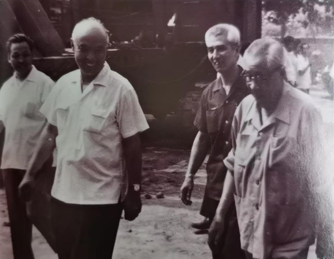 建国饭店管理委员会主任侯锡九陪同廖承志副委员长出席建国饭店工程剪彩仪式