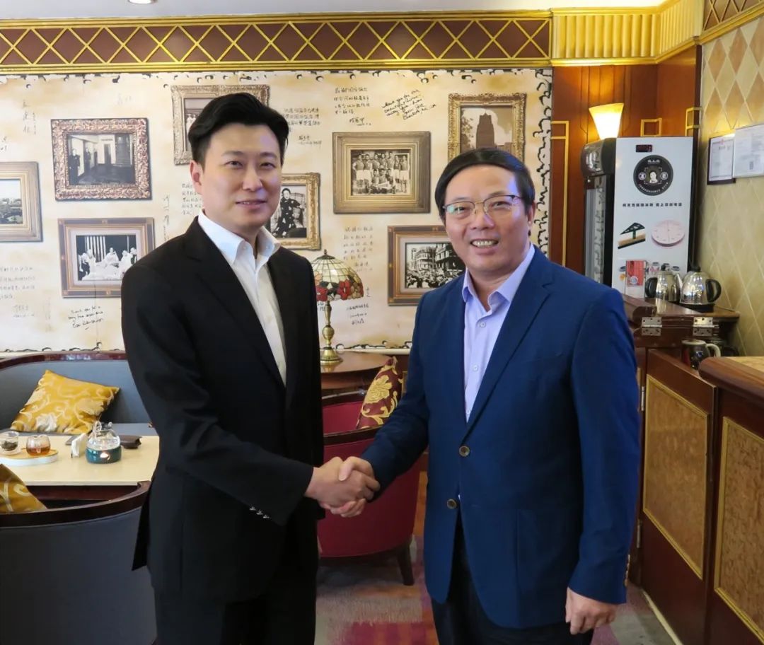 左为上海国际饭店总经理尹磊,右为特色酒店联盟秘书长钱三毛