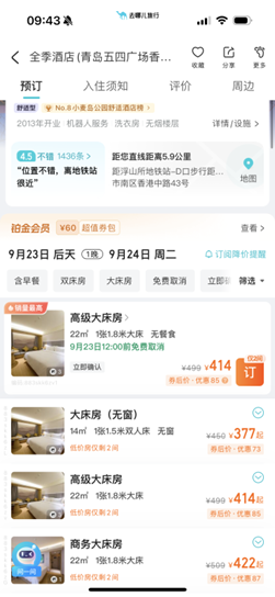 最重要的一点,本次测试会员选择的标准是“免费会员权益”,低频次酒店客户(每年住酒店4次以内)通常不会选择付费会员。在去哪儿不花钱就可以获取铂金会员,我的铂金会员应该是某年手机移动会员送的,并没有付费,如果用“免费会员”为标准,对应的华住会员应该为“星会员”,这种会员无论价格还是权益,与OTA存在明显差距。另外,华住会员还有一个BUG,我在华住已经购买过2次会员,早期是银卡,2022年付费升级到金卡,买卡时前台说是永久会员,2023年3月我还住过几天,但目前已经不是金卡,而且是被直接降级至星会员。所以,如果看免费会员,华住星会员对去哪儿铂金,星会员完败;华住金卡与去哪儿铂金比较接近,但去哪儿铂金可以免费获取,华住金卡则需要218元购买
